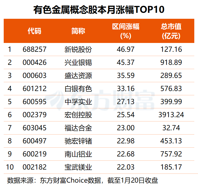 今年以来,有色金属板块走势较好,约九成个股录得上涨,其中新锐股份、兴业银锡区间涨幅均在四成以上,盛达资源、白银有色分别上涨35.59%和33XM交易官网.16%,中孚实业、驰宏锌锗、宝武镁业、锌业股份等11股累计涨幅均在20%至30%之间。